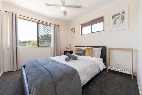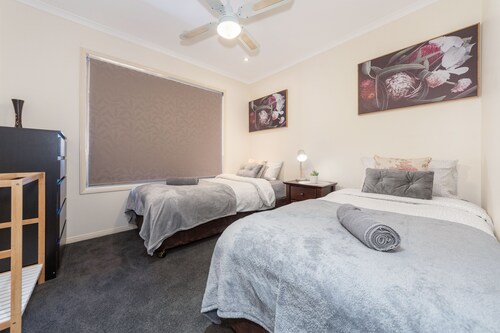 ホーリーウェルに位置するこのアパートメントは、南ストラドブローク島保護公園から 1.1 km、ハーバー タウンから 4.8 km です。イアン ディップル ラグーンおよびG. R. トンプソン パークも 10 km 圏内です。 ランドリー設備、庭園、およびバーベキューグリルがある禁煙のアパートメントです。 アパートメントには、ベッドルーム 4 室、WiFi (無料)、フェンス付きのプライベートヤードが備わっています。キッチンには、冷蔵庫、オーブン、コンロ、電子レンジが備わっています。