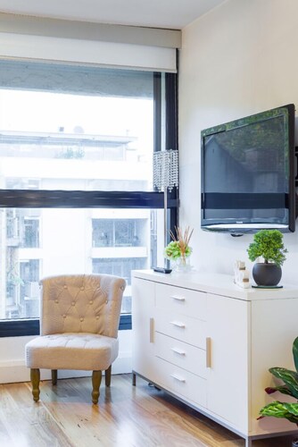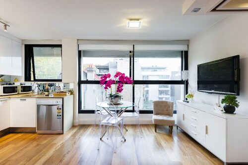 ポッツ ポイントに位置するこのアパートメントは、ウールームールー ワーフ、ハイド パーク、マーティン プレイスから 2 km 圏内です。サーキュラー キーおよびシドニー オペラハウスも 3 km 圏内です。地下鉄キングス クロス駅まで徒歩 11 分、地下鉄マーティン プレイス駅まで徒歩 20 分です。 ランドリー設備およびバーベキューグリルがある禁煙のアパートメントです。 アパートメントでは、冷蔵庫とオーブン、コンロ、電子レンジが備わったキッチンをご利用いただけます。便利な洗濯機、コーヒー / ティー メーカーのほか、WiFi (無料)、薄型テレビもご利用いただけます。