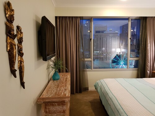 シドニー セントラル ビジネス ディストリクトに位置するこのアパートメントは、オーストラリア国立海洋博物館およびスター カジノから徒歩 10 分圏内です。インターナショナル コンベンション センター シドニーおよびシーライフ シドニー水族館も 15 分圏内です。 ライト レール ピルモント ベイ駅まで徒歩わずか 2 分、ライト レール コンベンション駅まで徒歩 6 分です。 屋内プールのほか、この禁煙のアパートメントにはフィットネスセンターおよびサウナがあります。その他の設備には、ホットタブ、コンシェルジュ サービス、およびランドリー設備があります。 アパートメントでは、プライベートプールのほかに、キッチン、洗濯機もご利用いただけます。便利な2 室のバスルーム、冷蔵庫のほか、バルコニー、テレビもご利用いただけます。