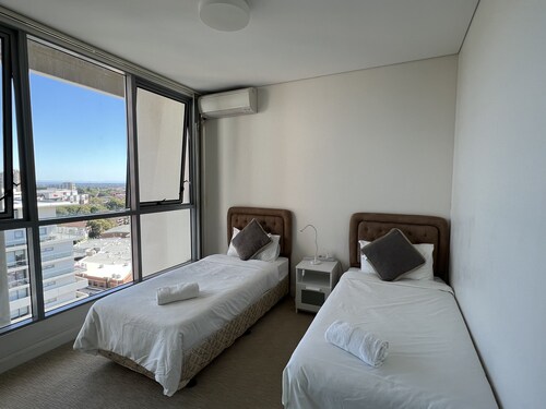 ハーストビルにあるこのアパートメントは、キング ストリート、エンモア シアター、バンクスタウン スポーツ クラブから 15 km 圏内です。シドニー大学およびロイヤル国立公園も 15 km 圏内です。アラワー駅まで徒歩 7 分、ハーストヴィル駅まで徒歩 12 分です。 禁煙のこのアパートメントでは、駐車場、インターネット アクセス、エレベーターをご利用いただけます。 アパートメントには、ベッドルーム 2 室、WiFi (無料)、バルコニーが備わっています。キッチンには、冷蔵庫、オーブン、コンロ、電子レンジが備わっています。