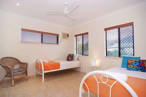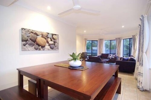 パーム コーブに位置するこのバケーションホームは、パーム コーブ ビーチ、ビエスパパームコーブ、クイーンズランドの湿った熱帯から 2 km 圏内です。マカリスター山脈国立公園およびクリフトン ビレッジ ショッピング センターも 3 km 圏内です。 この禁煙のバケーションホームには、屋内プール、屋外プール、およびランドリー設備があります。その他の設備にはバーベキューグリルがあります。 バケーションホームには、ベッドルーム 5 室、ソファー ベッド、DVD プレーヤーが備わっています。プライベートプールをご利用いただけるほか、冷蔵庫とオーブン付きのキッチンも備わっています。