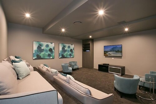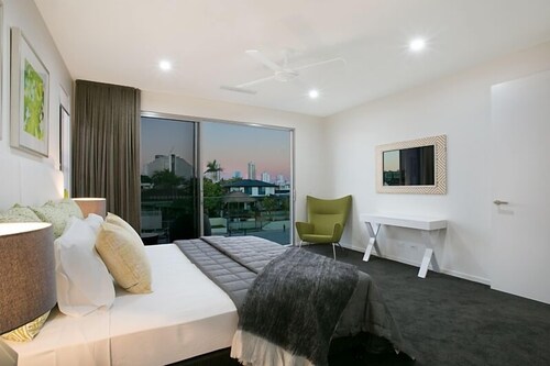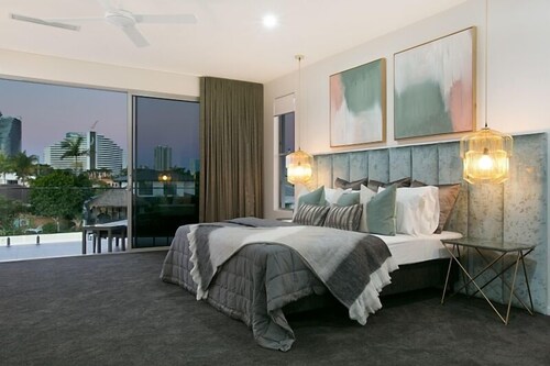 ブロードビーチ ウォーターズに位置するこのアパートメントは、パシフィック フェア ショッピングセンター、ザ スター ゴールド コースト、ゴールド コースト コンベンション & エキシビジョン センターから 2 km 圏内です。サーファーズ パラダイス ビーチおよびカビル アベニューも 5 km 圏内です。ブロードビーチ サウス ライトレール駅まで徒歩わずか 17 分です。 この禁煙のアパートメントには、ウォーターパーク、コンシェルジュ サービス、およびランドリー設備があります。その他の設備には庭園があります。 アパートメントには、ベッドルーム 7 室、フェンス付きのプライベートヤード、バルコニーが備わっています。プライベートプールをご利用いただけるほか、洗濯機、5 室のバスルーム、ダイニング スペースもあります。