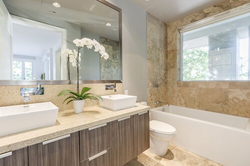 バンクーバーにあるファミリー向けのこのバケーションホームは、ウォーターフロントに位置し、バンクーバー フォールス クリーク シーウォールおよびサイエンス ワールドから徒歩 10 分圏内です。BC プレイス スタジアムおよびロジャース・アリーナも 2 km 圏内です。地下鉄メイン ストリート - サイエンス ワールド駅まで徒歩 10 分、地下鉄オリンピック ビレッジ駅まで徒歩 10 分です。 ウォーターパーク、屋内プール、およびフィットネスセンターがある禁煙のバケーションホームです。その他に、敷地内にはサウナ、ホットタブ、およびランドリー設備があります。 バケーションホームには、ベッドルーム 2 室、WiFi (無料)、バルコニーが備わっています。キッチンには、冷蔵庫、オーブン、コンロ、電子レンジが備わっています。