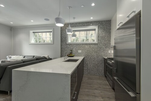 ウェスト サイドに位置するこのバケーションホームは、イングリッシュ湾から 0.6 km、BC プレイス スタジアムおよびバンクーバー ウォーターフロントから 5 km 圏内です。ロジャース・アリーナおよびバンクーバー コンベンション センターも 5 km 圏内です。 ウォーターパーク、ランドリー設備、および庭園がある禁煙のバケーションホームです。その他の設備にはバーベキューグリルがあります。 バケーションホームには、ベッドルーム 3 室、WiFi (無料)、フェンス付きのプライベートヤードが備わっています。キッチンには、冷蔵庫、オーブン、コンロ、電子レンジが備わっています。