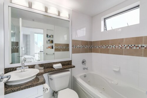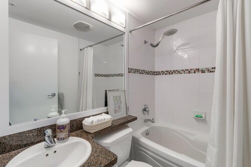 バンクーバーにあるファミリー向けのこのコンドミニアムは、ウォーターフロントに位置し、バンクーバー フォールス クリーク シーウォールおよびバンクーバー ウォーターフロントから徒歩 10 分圏内です。バンクーバー コンベンション センターおよびカナダ プレースも 15 分圏内です。 地下鉄バラード駅まで徒歩 8 分、地下鉄グランビル駅まで徒歩 12 分です。 ウォーターパークのほか、この禁煙のコンドミニアムにはフィットネスセンターおよびホットタブがあります。その他に、敷地内にはリムジン / タウンカー サービス、庭園、およびバーベキューグリルがあります。 コンドミニアムには、ベッドルーム 2 室、WiFi (無料)、DVD プレーヤーが備わっています。キッチンには冷蔵庫とオーブンが備わっており、優雅な滞在をお約束する暖炉、ジェットバスもご利用いただけます。客室清掃はリクエストにより行われます。