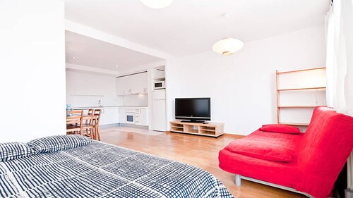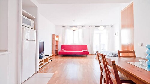 マドリード セントロに位置するこのコンドミニアムは、サンタ アナ広場、プエルタ デル ソル、マヨール広場から徒歩 5 分圏内です。グランビアおよびスペイン広場 - 王宮も 10 分圏内です。地下鉄ティルソ デ モリーナ駅と地下鉄ソル駅が徒歩 5 分圏内にあります。 コンドミニアムでは、独立したベッドルームをご利用いただけます。
