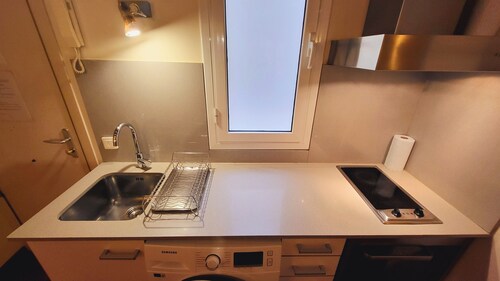 ダウンタウン バルセロナに位置するこのアパートメントは、ポータル デ ランヘルおよびラ ランブラから歩いてすぐです。カタルーニャ広場およびバルセロナ大聖堂も 10 分圏内です。プラサ カタルーニャ駅まで徒歩わずか 4 分、地下鉄 ウルキナオナ駅まで徒歩 7 分です。 この禁煙のアパートメントには、ランドリー設備があります。 アパートメントでは、DVD プレーヤー付きテレビに加えて、冷蔵庫とコンロ、電子レンジが備わったキッチンをご利用いただけます。便利な洗濯機、コーヒー / ティー メーカーのほか、WiFi (無料)、バルコニーもご利用いただけます。