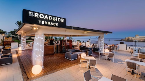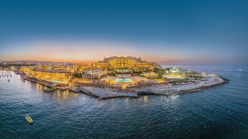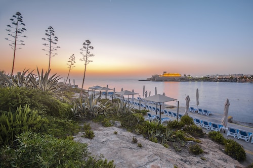 セントジュリアンズの繁華街パーチェヴィル地区の湾「セントジョージーズベイ」から延びる岬沿いにある、淡い黄色の外装が眩しい5つ星ホテルです。