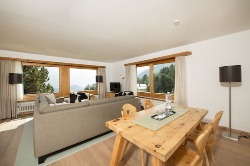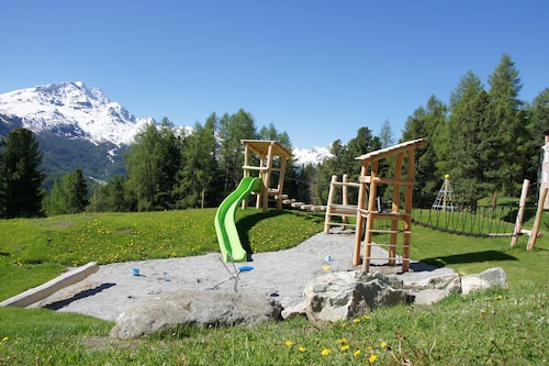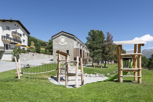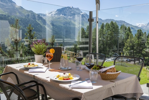 サン モリッツに位置する、ファミリー向けのこのホテルは、山中にあり、シグナルバーンおよびコルヴィグリア スキー リゾートから 5 km 圏内です。シュターツ湖およびムオッタス ムラグルも 10 km 圏内です。 レストラン、サウナ、およびスパサービスがある禁煙のホテルです。朝食ビュッフェ (無料)、共用エリアでの WiFi (無料)、およびセルフパーキング (無料)もご利用いただけます。その他の設備には、会議スペース、コンシェルジュ サービス、およびドライクリーニングがあります。