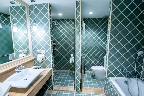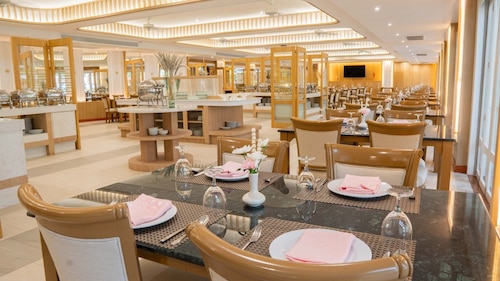 ホテル内には、3つのスイミングプール、2つのレストラン、キッズクラブ、テイラーショップ、フィットネス、