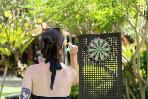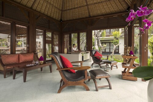バリらしいシックなインテリアのお部屋で、ビーチを見ながらのんびり