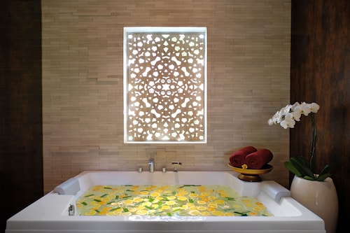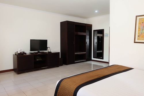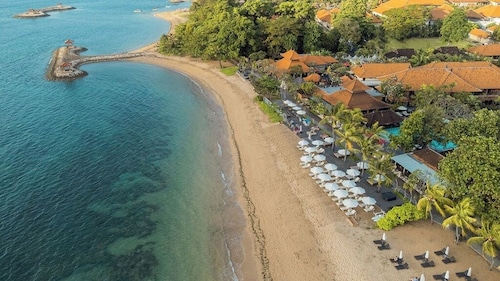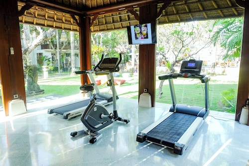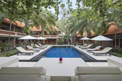 バリ島で一番最初にリゾート開発されたサヌール地区。グリヤ・サントリアンは、サヌールの目抜き通り、ダナウ・タンブリンガン通りに面していながらも、ホテルの中へ1歩足を踏み入れると、きれいに手入れされたガーデン、コテージタイプのお部屋とバリの伝統要素を色濃く感じられます。プールも3カ所あり、施設も充実。現在の交通渋滞で、空港からは遠く感じられますが、サヌールの目抜き通り、レストランやショップが立ち並ぶ、ダナウ・タンブリンガン通りに面しているので、クタ方面へ出ることにこだわらなければ、サヌール内を徒歩でショッピングやお食事も満喫できます。ハーディーズというスーパーも通り沿いにありますよ。客室は全室コテージタイプで、新しさはありませんが、その分、バリのムードが存分に感じられる作りです。バリ風のシックなデザインで、ゆったりくつろげます。バスタブがあるお部屋とないお部屋ばらつきがありますが、ヘアードライヤーやシャンプー等も揃っていて快適。デラックスルームとスイートにはバスローブもあります。スタッフは地元の人も多く、素朴でフレンドリー。日本語はあまり通じませんが、質問にも親切に応じてくれますよ。通り沿いには、単独でも有名