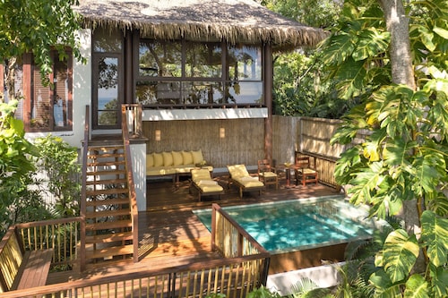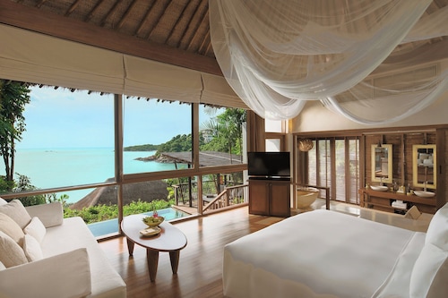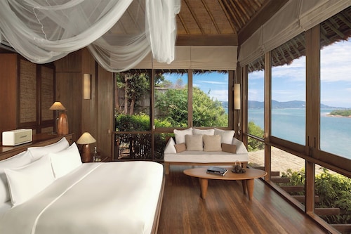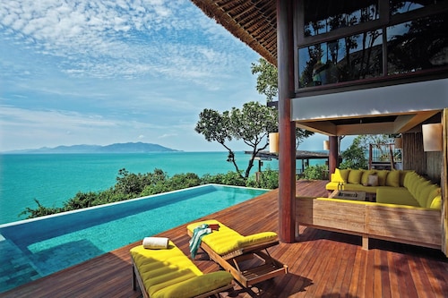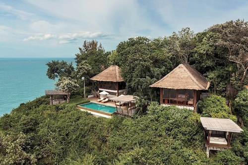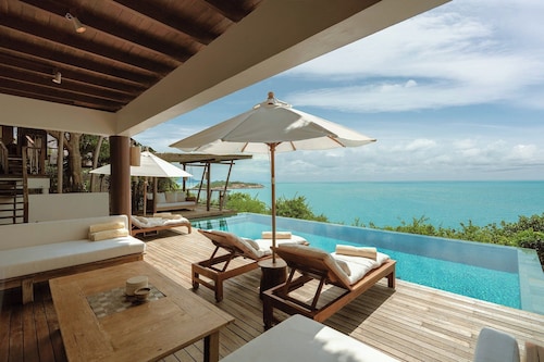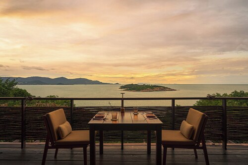 サムイ空港から送迎車で約15分、到着したのは朝10時前だったのですが、部屋が利用できるとのことですぐにチェックインさせていただけました。Ocean Front Pool villa suiteです。このホテルは自然志向が強いと思われ、そのようなコンセプトを歓迎する方には最高の滞在となると思いますが、人によってはあまりおすすめできない点もあります。例えば、時期にもよると思いますが、蚊が比較的多かったりセミの鳴き声も夜中まで盛大です。villaの設えは完璧で、インテリアも統一感があって心地よく、部屋から見る紺碧の海と青空、森の木々は、ここでしか味わえない贅沢な借景です。スタッフのサービスも一流で、些細な相談にも何でも乗っていただけます。私たちはスパを利用したのですが、混雑していて希望どおりのコースが難しかったのですが、メニューにない少し短い時間でサービスしていただけたりしました(値段も安くなっていました)。週に1回行われているカクテルパーティ(無料)は、とても穏やかでアットホームな雰囲気でおすすめです。ダイニングオンザロックレストランは、漆黒の海を眺める岩の上で満点の星を眺めながら食事を楽しむことができる唯一無二の素晴らしいロケーションです。ワインも充実しており、料理に合ったグラスワインをそれぞれいただくことができます。ただし値段はかなり高めです。