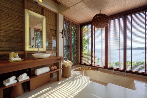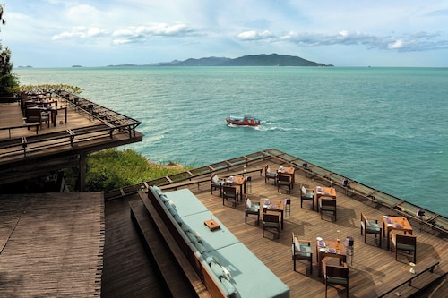 サムイ空港から送迎車で約15分、到着したのは朝10時前だったのですが、部屋が利用できるとのことですぐにチェックインさせていただけました。Ocean Front Pool villa suiteです。このホテルは自然志向が強いと思われ、そのようなコンセプトを歓迎する方には最高の滞在となると思いますが、人によってはあまりおすすめできない点もあります。例えば、時期にもよると思いますが、蚊が比較的多かったりセミの鳴き声も夜中まで盛大です。villaの設えは完璧で、インテリアも統一感があって心地よく、部屋から見る紺碧の海と青空、森の木々は、ここでしか味わえない贅沢な借景です。スタッフのサービスも一流で、些細な相談にも何でも乗っていただけます。私たちはスパを利用したのですが、混雑していて希望どおりのコースが難しかったのですが、メニューにない少し短い時間でサービスしていただけたりしました(値段も安くなっていました)。週に1回行われているカクテルパーティ(無料)は、とても穏やかでアットホームな雰囲気でおすすめです。ダイニングオンザロックレストランは、漆黒の海を眺める岩の上で満点の星を眺めながら食事を楽しむことができる唯一