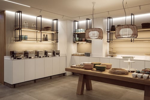 頻繁にバスが行き来するバス停がホテル目の前にあるので、他の街に出かける際にも便利なロケ-ションとなっています。一方朝食会場は少し奥まっているので、あまり明るい雰囲気ではなく、種類もそんなに多くはありません。朝食をあまりとらないヨ-ロピアンを象徴するような朝食ビュッフエだと思いました。