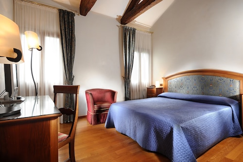ハネムーン得点があると書いてあっても何も特別なことはありませんでした。それ以下にツインベットでした。写真とはぜんぜん違う部屋で少し残念でした。しかし、駅からも水上バスの停留所からも本当に近くて、スーツケースを運んでいたので便利でした。ホテルに着いてすぐ荷物を部屋に置いて、すぐ身軽にベニスの街を観光できました。ホテルの近くに安いトラットリアもあって美味しかったです!フロントの男性の方たちも明るくて親切な方たちでした。英語も上手だったので安心しました。朝食は色々な種類のパンやヨーグルトやハムやチーズなどがありました。ロビーは元修道院の面影がある空間で素敵でした。アメニティーも充実してましたが、シャワーカーテンがなくてシャワーを使うのに苦労しました。
