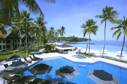 パラオだけでなく、ミクロネシアのなかでも最も美しいホテルといってもいいほど、室内も景色もすばらしいホテル。 南国の花や植物で飾られた入り口を入ると、ロビーにパラオの伝統芸能である『イタボリ』(パラオの伝説や神話が木材に彫り込まれた彫刻)が置いてあり、その奥にはビーチが見え、ホテルに入っただけで美しいパラオを感じることができる。 ホテルの敷地にはプライベートビーチがあり、シュノーケリングをしたり、カヤックをしたりするなど海のアクティビティを楽しむこともできる。また、ビーチからサンセットを眺めることもできる。緑豊かなガーデンにはハンモックがあり、海を横目にハンモックに揺られながら読書や昼寝をするなど至福の時間を過ごすことができる。その他にも、ジム、プール、テニスコート、スパもあり、1日ホテルで過ごしても飽きることはない。また、ツアーデスクやダイビングショップも敷地内にあるので、ダイビングや現地ツアーに参加するのにも大変便利なロケーションとなっている。ツアーデスクやフロントには日本人スタッフもいるので、英語が得意ではない人でもひと安心!客室はコテージタイプとなっており、室内には南国の生花が飾られ、アメニティグッ