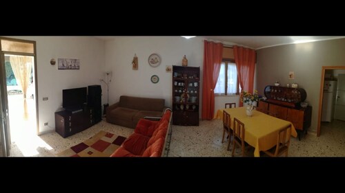 Situated in Custonaci, this vacation home is 0.9 mi (1.4 km) from Monte Cofano Nature Reserve and 2.2 mi (3.5 km) from Macari Beach. Zingaro Nature Reserve and Cala Bue Marino are also within 6 mi (10 km). Laundry facilities and a garden are available at this vacation home. The vacation home boasts a fireplace and offers a kitchen and a washing machine. Guests can appreciate conveniences like 2 bathrooms and a refrigerator, and other amenities include a balcony and a TV.