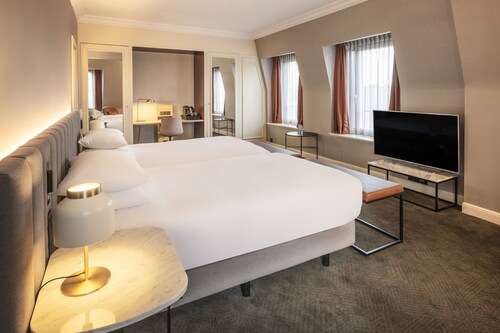 空港から電車に乗って20分で中央駅に到着し、駅を出るとすぐヒルトンが目に入ります。日本から大きなスーツケースを持参される方には、嬉しいロケーションですね。観光拠点としても抜群の場所にあり、グランプラス、美術館や中心地にある多くの観光名所へも徒歩圏内です。ヒルトンだけあって、観光客だけでなく仕事で利用する方も多く、EU本部までもすぐ近くのメトロ駅から4駅とアクセスしやすいです。