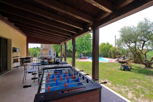 モンテファーノに位置するこのバケーションホームは、ヴィラ コロレド メルス シビックミュージアム、レカナーティ シビック タワー、San Domenico Churchから 15 km 圏内です。ピアッツァ ジャコモ レオパルディおよびジュゼッペ ペルシアーニ シアターも 15 km 圏内です。 このバケーションホームには、庭園およびバーベキューグリルがあります。 バケーションホームでは、プライベートプールのほかに、洗濯機、3 室のバスルームもご利用いただけます。便利な冷蔵庫、電子レンジのほか、食器洗い機、テレビもご利用いただけます。