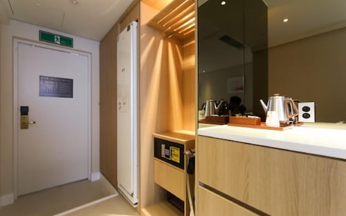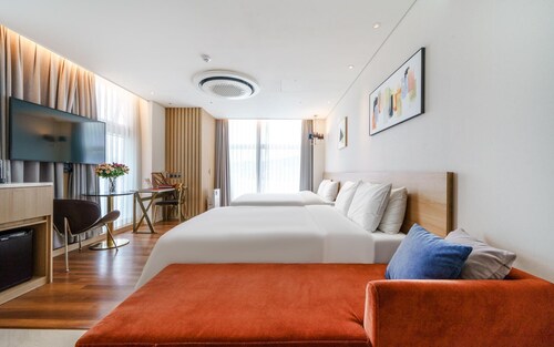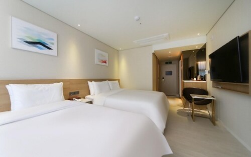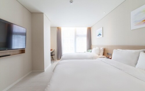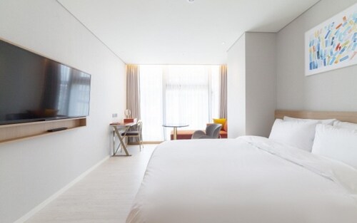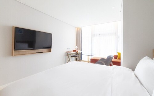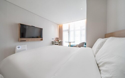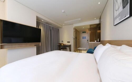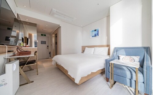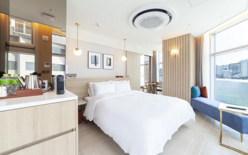 水営区に位置するこのホテルは、民楽水辺公園および広安里ビーチから 2 km 圏内です。新世界セントムシティおよび海雲台ビーチも 5 km 圏内です。地下鉄 広安駅まで徒歩 17 分、地下鉄 水営駅まで徒歩 21 分です。 セルフパーキング (無料)および共用エリアでの WiFi (無料)があるホテルです。