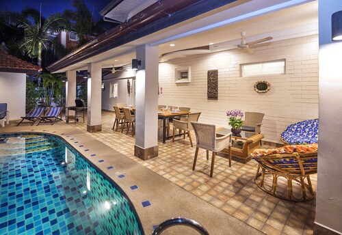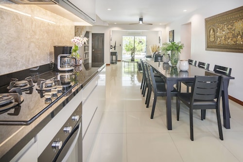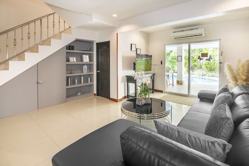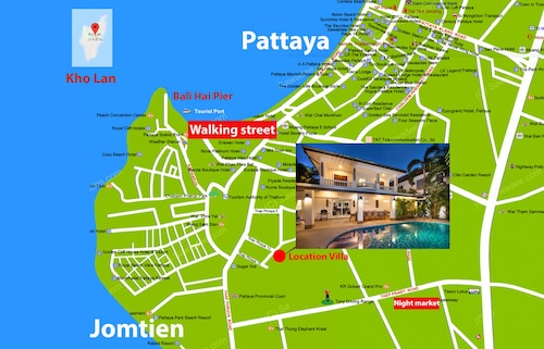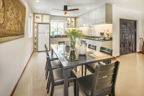 サウス パタヤに位置するこのヴィラは、湯の森温泉パタヤ店、ウォーキング ストリート、パタヤ ビーチから 3 km 圏内です。ジョムティエン ビーチおよびパタヤ ビーチ ロードも 3 km 圏内です。 このヴィラには、ウォーターパーク、ランドリー設備、および庭園があります。その他の設備にはバーベキューグリルがあります。 ヴィラには、ベッドルーム 6 室、フェンス付きのプライベートヤード、バルコニーが備わっています。プライベートプールをご利用いただけるほか、冷蔵庫とコンロ付きのキッチンも備わっています。客室清掃が行われる日が限定されています。