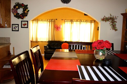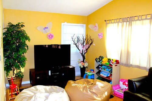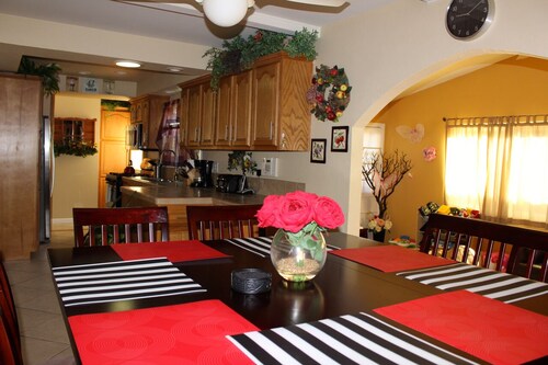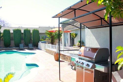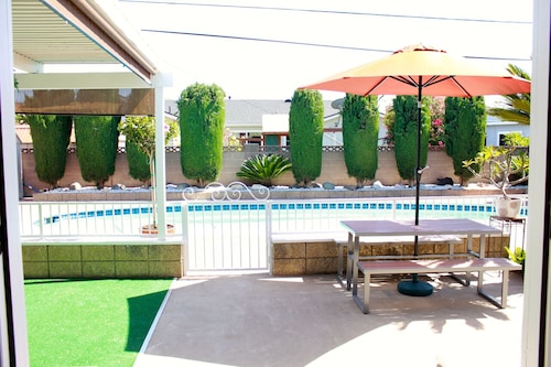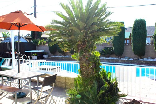 ファミリー向けのこのバケーションホームは街の中心部に位置し、ダウンタウン ディズニー地区、ディズニーランド® リゾート、ディズニー カリフォルニア アドベンチャー パークから 3 km 圏内です。アナハイムコンベンションセンターまで 2.8 km です。 禁煙のこのバケーションホームには、ウォーターパーク、屋外プール、およびホットタブがあります。その他の設備には、ランドリー設備、ゲームコーナー、およびバーベキューグリルがあります。 バケーションホームには、ベッドルーム 3 室、WiFi (無料)、ソファー ベッドが備わっています。キッチンには冷蔵庫とオーブンが備わっており、優雅な滞在をお約束するプライベートプール、暖炉もご利用いただけます。