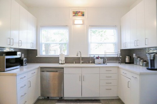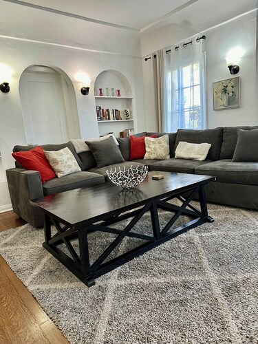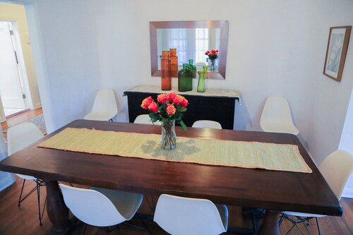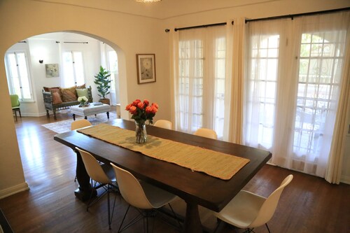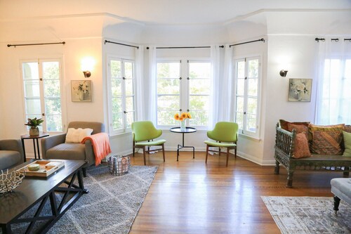 ロサンゼルス中心部に位置する、ファミリー向けのこのバケーションホームは、ウィルシェア ブールバード、ビヴァリー センター ショッピング モール、ロサンゼルス カウンティ美術館から徒歩 15 分圏内です。ザ グローブおよびロデオドライブも 5 km 圏内です。 ランドリー設備のほか、この禁煙のバケーションホームには庭園およびバーベキューグリルがあります。 バケーションホームには、ベッドルーム 4 室、フェンス付きのプライベートヤード、DVD プレーヤーが備わっています。暖炉をご利用いただけるほか、冷蔵庫とオーブン付きのキッチンも備わっています。