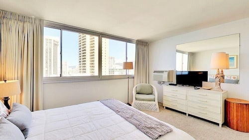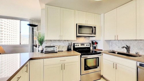 ワイキキに位置するこのコンドミニアムは、クヒオ ビーチ パークおよびワイキキ ビーチから歩いてすぐです。インターナショナル マーケット プレイスおよびホノルル動物園も 10 分圏内です。 この禁煙のコンドミニアムには、フィットネスセンター、サウナ、およびランドリー設備があります。 コンドミニアムでは、冷蔵庫とオーブン、コンロ、電子レンジが備わったキッチンをご利用いただけます。便利な洗濯機、コーヒー / ティー メーカーのほか、食器洗い機、テレビもご利用いただけます。