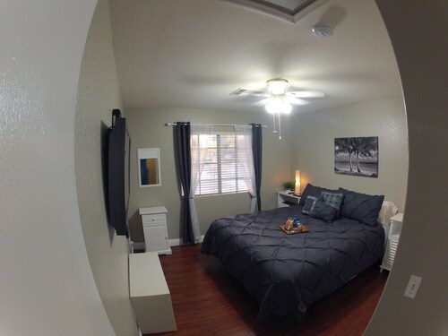 シルバラード ランチに位置するこのバケーションホームは、セントローズ ドミニカン ホスピタルから 3.7 km、カジノ アット サウス ポイント ホテルから 4 km です。グリーン バレー ランチ カジノおよびディストリクト アット グリーン バレー ランチも 10 km 圏内です。 ランドリー設備およびバーベキューグリルがある禁煙のバケーションホームです。 バケーションホームでは、暖炉のほかに、キッチン、洗濯機もご利用いただけます。便利な1.5 室のバスルーム、電子レンジのほか、コーヒー / ティー メーカー、テレビもご利用いただけます。