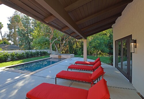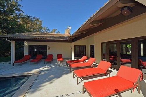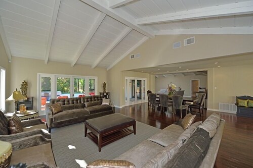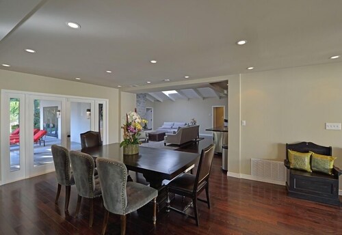 ロサンゼルスにあるこのバケーションホームは、グリフィス天文台およびハリウッド ブールバードから 2 km 圏内です。ハリウッド ウォーク オブ フェーム (名所)およびハリウッド ボウル (劇場)も 5 km 圏内です。地下鉄 ハリウッド - ウェスタン駅まで徒歩わずか 13 分です。 屋外プール、ホットタブ、およびコンシェルジュ サービスがある禁煙のバケーションホームです。その他の設備には、ランドリー設備、リムジン / タウンカー サービス、および庭園があります。 バケーションホームには、ベッドルーム 4 室、WiFi (無料)、フェンス付きのプライベートヤードが備わっています。キッチンには冷蔵庫とオーブンが備わっており、優雅な滞在をお約束するプライベートプール、暖炉もご利用いただけます。