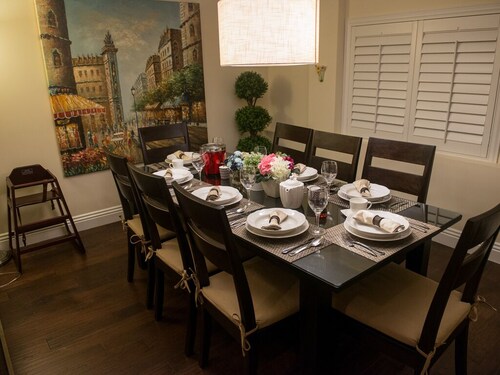 アナハイムにあるファミリー向けのこのバケーションホームは、サウスウェスト アナハイムに位置し、ダウンタウン ディズニー地区、ディズニーランド® リゾート、ディズニー カリフォルニア アドベンチャー パークから 3 km 圏内です。アナハイムコンベンションセンターまで 3.4 km です。 屋外プールのほか、この禁煙のバケーションホームにはランドリー設備およびゲームコーナーがあります。その他の設備には、庭園およびバーベキューグリルがあります。 バケーションホームには、ベッドルーム 3 室、DVD プレーヤー、パティオが備わっています。キッチンには冷蔵庫とオーブンが備わっており、優雅な滞在をお約束するプライベートプール、暖炉もご利用いただけます。
