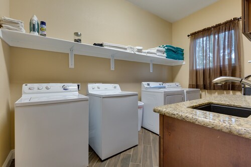 ラスベガスのロイヤル クレスト ランチェロスに位置するファミリー向けのこのバケーションホームは、ネバダ大学ラス ベガス校およびトーマス & マック センター (スタジアム)から 3 km 圏内です。MGM グランド カジノまで 4.8 km です。 ウォーターパーク、ホットタブ、およびランドリー設備がある禁煙のバケーションホームです。その他の設備にはバーベキューグリルがあります。 バケーションホームには、ベッドルーム 5 室、DVD プレーヤー、パティオが備わっています。プライベートプールをご利用いただけるほか、冷蔵庫とオーブン付きのキッチンも備わっています。