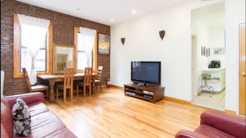 マンハッタンに位置するこのアパートメントは、マディソン スクエア ガーデン、ザ ハイ ライン パーク、メイシーズ (百貨店)から徒歩 10 分圏内です。ジェイコブ K ジャビッツ コンベンション センターおよびフィフス アベニューも 15 分圏内です。 ペン駅まで徒歩わずか 4 分、地下鉄 34 ストリート - ペンシルヴァニア駅まで徒歩 5 分です。 フィットネスセンター、ホットタブ、およびランドリー設備がある禁煙のアパートメントです。その他の設備には庭園があります。 アパートメントには、ベッドルーム 2 室、WiFi (無料)、パティオが備わっています。キッチンには、冷蔵庫、オーブン、コンロ、電子レンジが備わっています。
