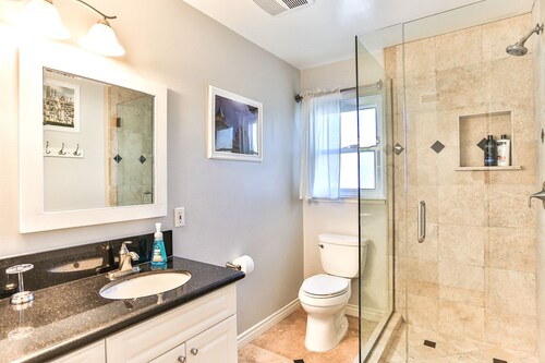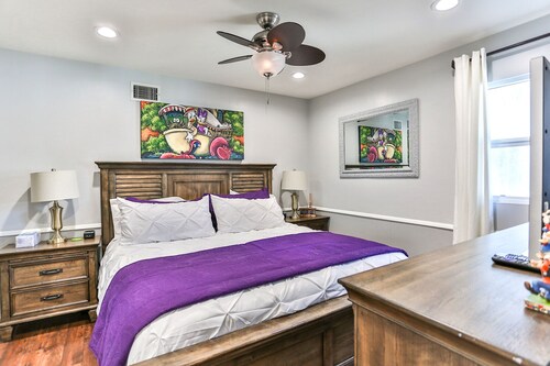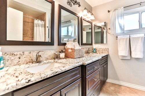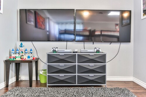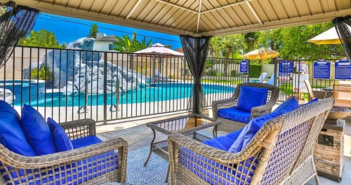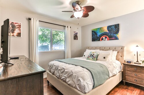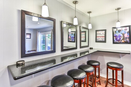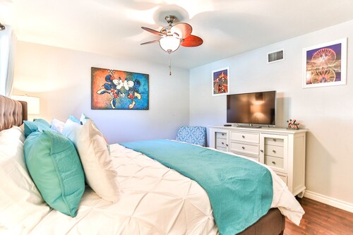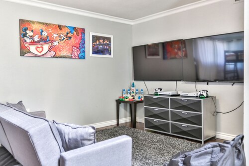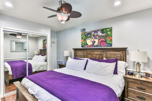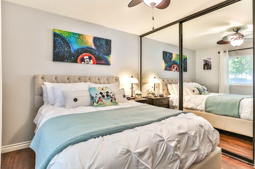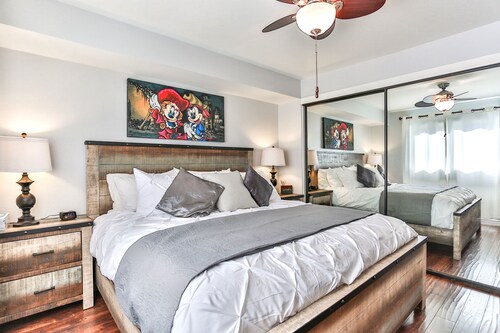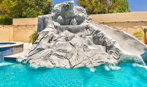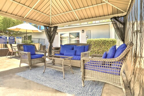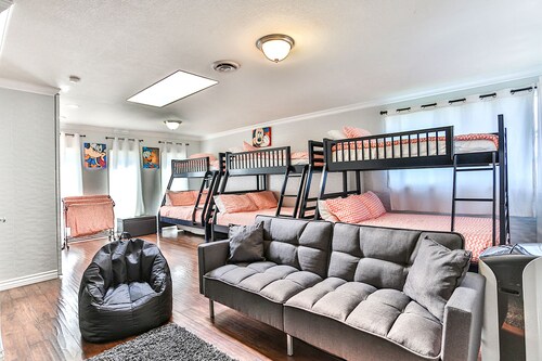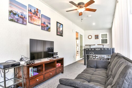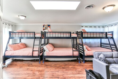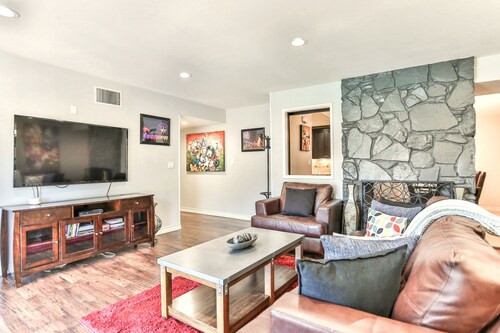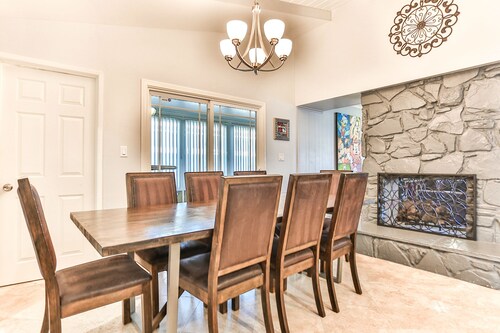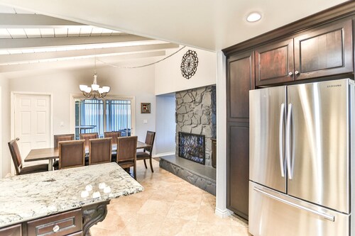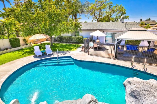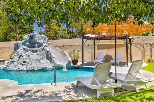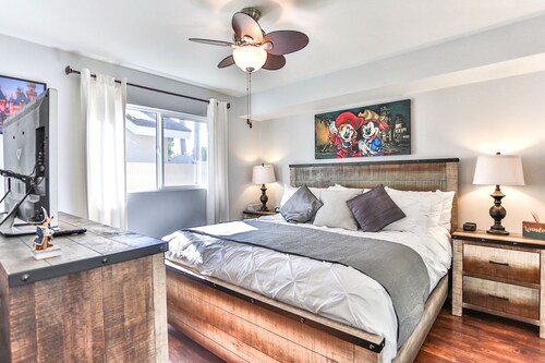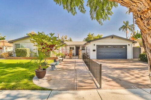 ファミリー向けのこのバケーションホームは街の中心部に位置し、フェスティバル アンフィシアターおよびアナハイムコンベンションセンターから 3 km 圏内です。ダウンタウン ディズニー地区およびディズニー カリフォルニア アドベンチャー パークも 5 km 圏内です。 この禁煙のバケーションホームには、屋外プール、ホットタブ、およびランドリー設備があります。その他に、敷地内にはゲームコーナー、庭園、およびバーベキューグリルがあります。 バケーションホームには、ベッドルーム 5 室、WiFi (無料)、フェンス付きのプライベートヤードが備わっています。キッチンには冷蔵庫とオーブンが備わっており、優雅な滞在をお約束するプライベートプール、暖炉もご利用いただけます。