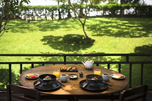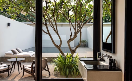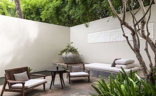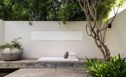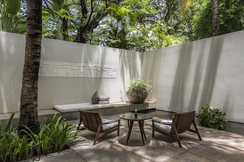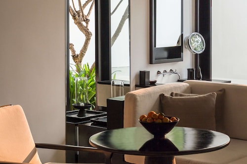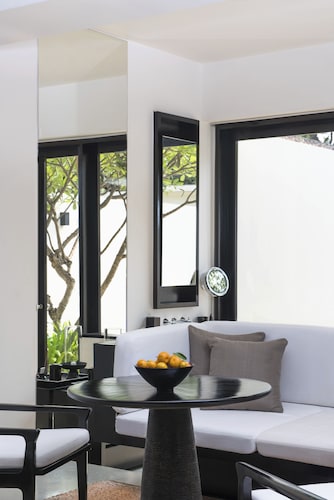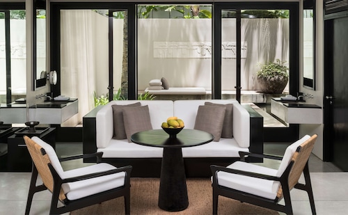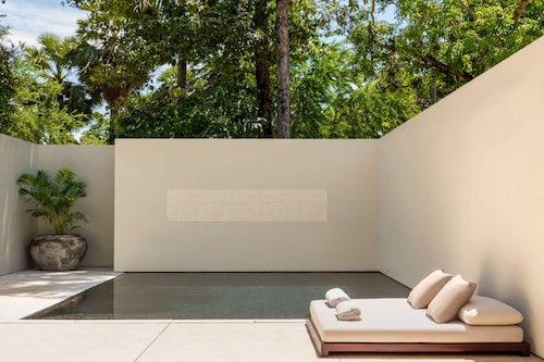 全室スイートルームで、パーソナルバトラー(より良い滞在にするために、観光内容の相談やお手伝い等をしてくれる、いわゆる執事サービス)があります。外観からでは中の様子が一切見れず完全なセキュリティーで守られています。ルームレートには、観光・食事も含まれているため、お値段が高いですが、設備・サービス全てにおいて満足のいく滞在が送れること間違いなし。立地は、シェムリアップ国際空港からトゥクトゥク(三輪バイク)で約15~20分ほどで、空港送迎はホテルのサービスを利用出来るので安心です。徒歩圏内には、ロイヤル・インディペンデンス・ガーデン、アンコール国立博物館があり便利。また、アンコールワット通りに面しているため、遺跡観光へも市街地へも交通の便がよく好立地です。全部屋スイートの客室は、スイートとプールスートの2つのカテゴリーに分かれています。客室内はベッドルームの他、リビングスペース、空間バスルームがあり、白を基調とした清潔なデザインで落ち着きがあります。スイートルームは58平方メートルと広々としており、プールスイートルームには、さらに6メートル×5メートルのプライベートプールが完備されています。各部屋にはエアコン、