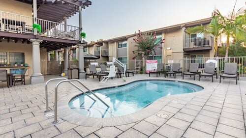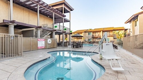 アナハイム リゾートに位置するこのバケーションホームは、アナハイム ガーデン ウォーク (ショッピング センター)、アナハイムコンベンションセンター、ディズニーランド® リゾートから 2 km 圏内です。ダウンタウン ディズニー地区およびディズニー カリフォルニア アドベンチャー パークも 3 km 圏内です。 フィットネスセンター、ホットタブ、およびコンシェルジュ サービスがある禁煙のバケーションホームです。共用エリアでの WiFiは無料です。 その他の設備には、ランドリー設備、ゲームコーナー、およびバーベキューグリルがあります。 バケーションホームには、ベッドルーム 2 室、ソファー ベッド、DVD プレーヤーが備わっています。暖炉をご利用いただけるほか、冷蔵庫とオーブン付きのキッチンも備わっています。客室清掃はリクエストにより行われます。