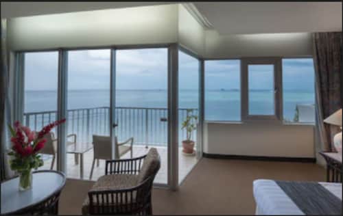 ススペ地区にあり、空港~ホテル、ホテル~繁華街・ガラパン、いずれもクルマで約15分の距離。