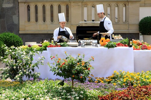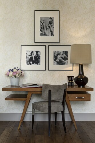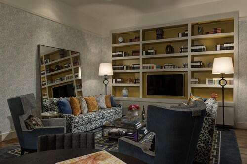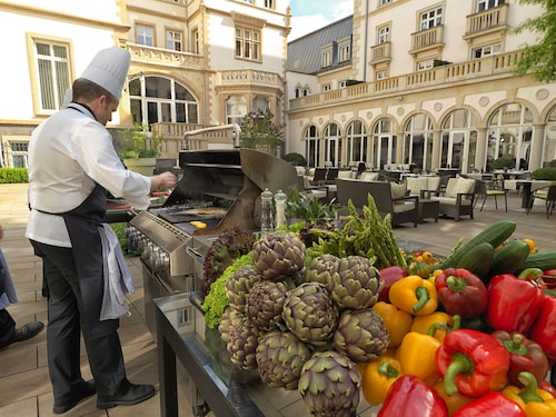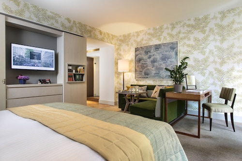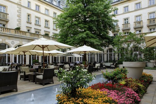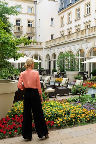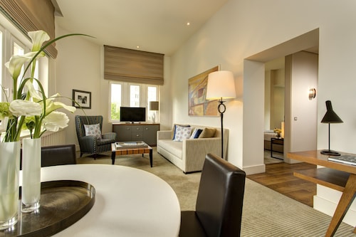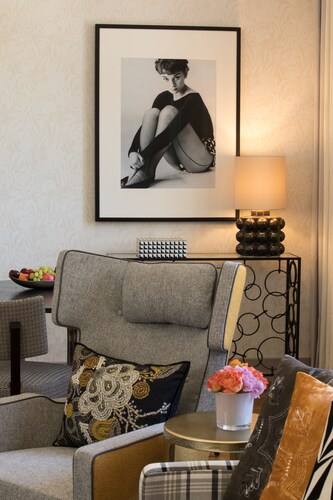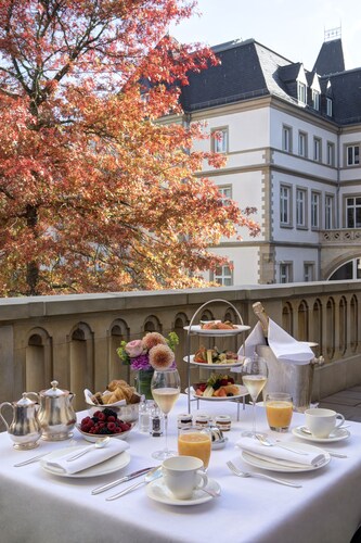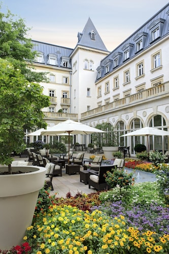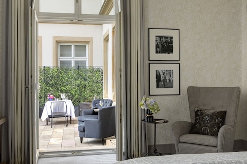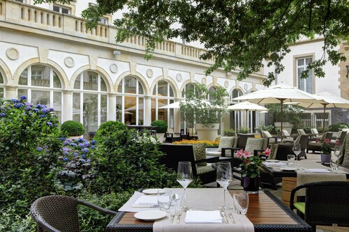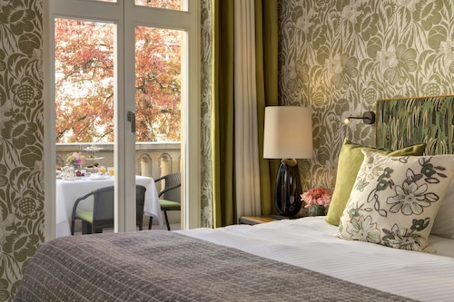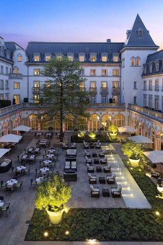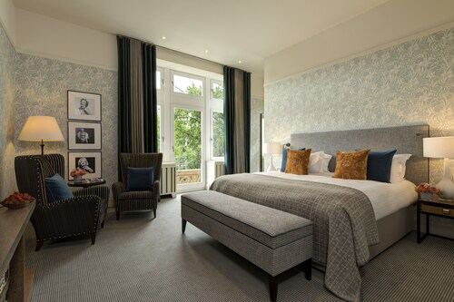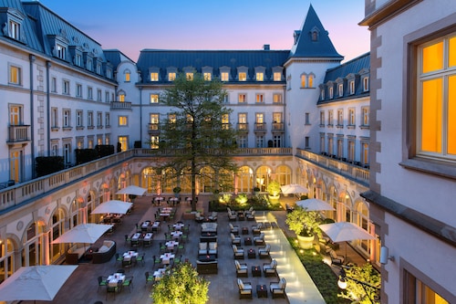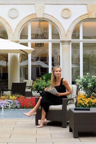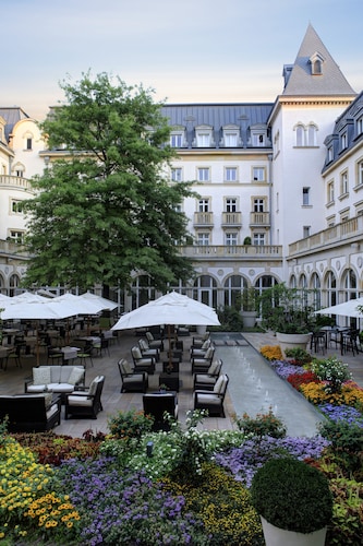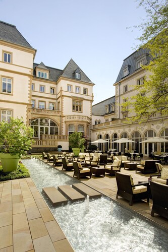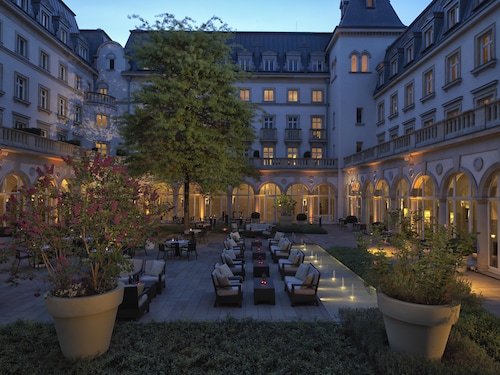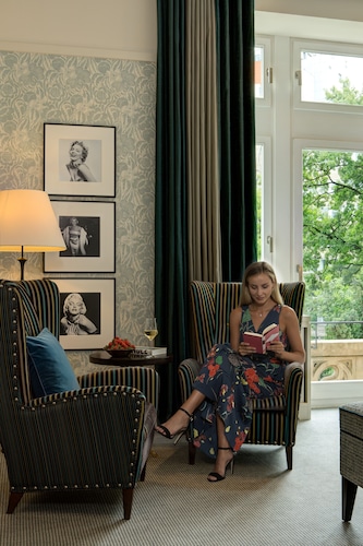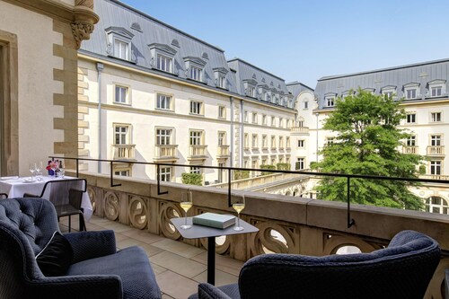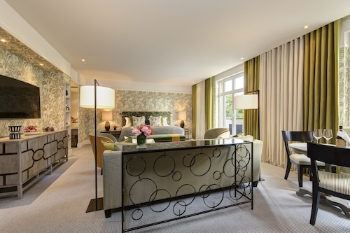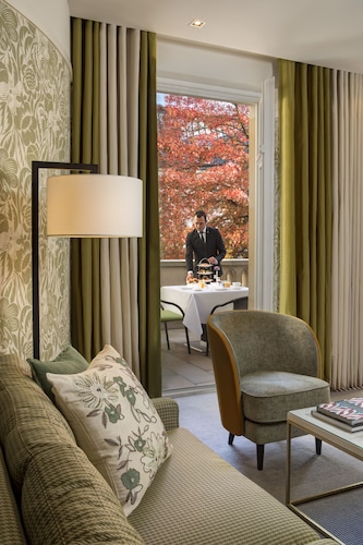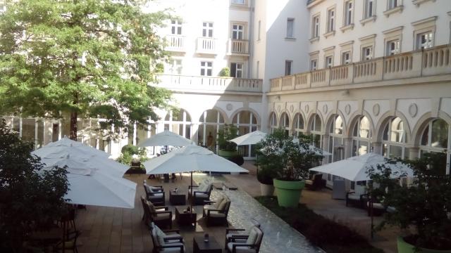 イギリスのホテルブランド「Rocco Forte Hotels」(ロッコフォルテホテルズ)が手掛けたホテル「Villa Kennedy」(ヴィラ・ケネディ)をご紹介します。場所はザクセンハウゼン地区の西側。塀に囲まれた古城のような外観です。今より110年以上前の1901年に私邸として建築された建物を一部残したまま改修したというユニークなホテルです。館内に足を踏み入れて驚くのは、その広さ。中庭を囲むように170室もの客室が並び、テラスのソファ席で食事を楽しめます。訪れるゲストがまるで『高級邸宅で暮らす』ようにくつろげる空間です。オーセンティックなバー「Bar JFK」(バー・ジェイエフケー)や、ミシュラン受賞シェフが監修するイタリアンレストラン「Gusto」(ガスト)、個性的なインテリアのラウンジ、インドアプールを備えたスパやサウナ、空調付きの喫煙室などの施設も充実しています。バーやラウンジでは生演奏のパフォーマンスもありますよ。ご紹介する部屋は、最上級のプレジデンシャルスイートの次のランクに入る「アンバサダースイート」でお値段は一泊2千ユーロ台。広さは90平方メートルで、間取りはリビングルームとベッドルー