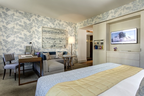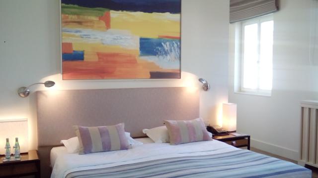 基本のデラックスルームは一泊250ユーロ前後で広さ35平方メートル。キングサイズベッドもしくはツインベッドを選択でき、バスタブ付きの浴室に広いシンク、3台まで繋がるWi-Fiやバスアメニティが無料でご利用いただけます。