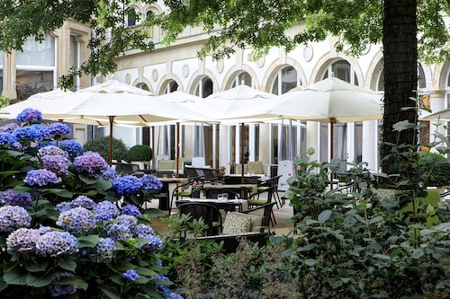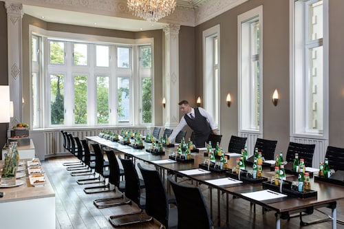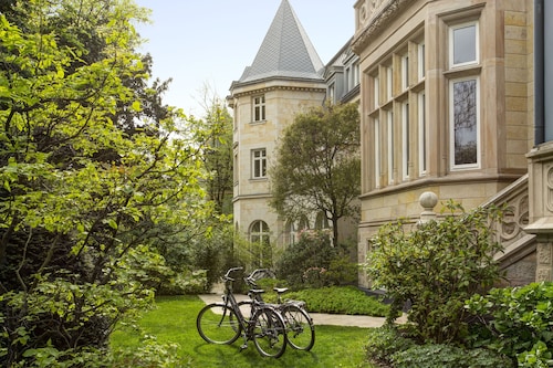 場所はザクセンハウゼン地区の西側。塀に囲まれた古城のような外観です。今より110年以上前の1901年に私邸として建築された建物を一部残したまま改修したというユニークなホテルです。