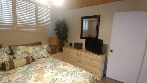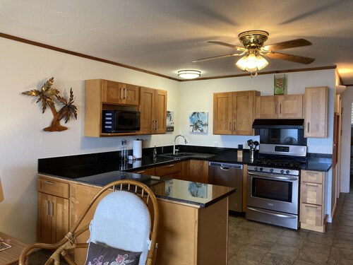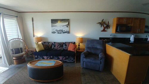 ビーチに位置する、カウナカカイ-モロカイのこのコンドミニアムは、ホクカノ・ウアラプエ コンプレックス、カルアアハ教会、スミス・ブロンテ・ランディングから 3 km 圏内です。プコハラグーンおよびオクトパス・ロックも 5 km 圏内です。 ビーチにあるこのコンドミニアムでは、プレイグラウンドやバーベキューグリルなどの便利な設備やサービスをご利用いただけます。 コンドミニアムでは、冷蔵庫とオーブン、コンロ、電子レンジが備わったキッチンをご利用いただけます。エンターテインメント設備として、DVD プレーヤー付きのスマートテレビがあるほか、便利な洗濯機、コーヒー / ティー メーカーもご利用いただけます。