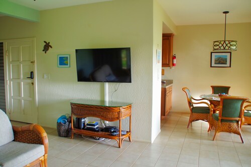 ビーチに位置する、リフエのこのコンドミニアムは、キッチンズ・ビーチ、リドゲート ビーチ、カマラニプレイグラウンドから徒歩 15 分圏内です。ワイルア・ビーチおよびワイルア ゴルフ コースも 2 km 圏内です。 ビーチにあるこのコンドミニアムでは、プレイグラウンドやバーベキューグリルなどの便利な設備やサービスをご利用いただけます。 コンドミニアムでは、冷蔵庫とオーブン、コンロ、電子レンジが備わったキッチンをご利用いただけます。エンターテインメント設備として、DVD プレーヤー付きのスマートテレビがあるほか、便利な1.5 室のバスルーム、洗濯機もご利用いただけます。