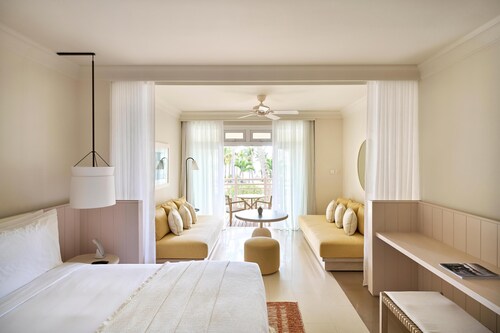 The Resort situated in the quaint seaside village of Belle Mare on the east coast of Mauritius, against a vivid backdrop of the Indian Ocean, is the vibrant beach hotel.