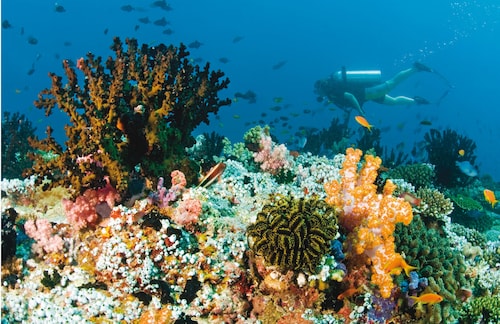 日本人に人気の水上ヴィラは、広々したテラスや海が眺められるバスタブなどロマンティックなつくりです。テラスにプールが付いたタイプの水上ヴィラもあります。テラスの下は絶好のシュノーケリングポイントになっており、水上ヴィラ周辺でシュノーケリング楽しめます。