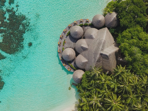 歩いて島1周10分弱とモルディブの中でも小さいこじんまりとした島にある高級リゾートです。ヨーロッパ人ゲストが多く、小さい子供の宿泊には制限があるため上品かつ静かで落ち着いた雰囲気のリゾートです。スモールラグジュアリーリゾートの一員でもあります。