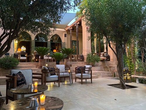 そんなことより、ここの空気感がたまらない。レセプションを抜けると、のんびりした、庭園のような空間が広がります。若いけれど、きちんと教育されたモロッコ人スタッフがにこやかに出迎えてくれます。お部屋はスタンダードでも十分に荷物広げることが出来るだけのスペースがあり、とてもおしゃれ。家族ステイ用の1戸建てのようなお部屋もあり、時期によっては西洋人の小さなこともたちがプールや屋外レストランの周りを走り回っていて、ここがマラケシュであることを忘れてしまいます。