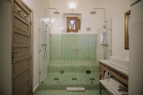 孔雀が数羽、放し飼いにしてあり、外のテラス席で朝食を食べていると寄ってきて、パンなんかをおねだりする光景も和やか。プールもお庭もハマムもショップもあり、ホテルで1日過ごしても、十分楽しめます。雑多で忙しいメディナを一日中歩き疲れた翌日は、のんびりしてもいいのでは。