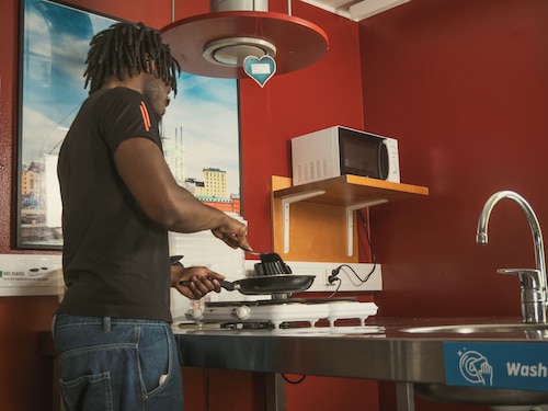 立地条件の良さも見逃せない。ヘルシンキ市東部の出島、カタヤノッカ(Katajanokka)の真ん中にあり、中央駅から歩いても約20分。4番トラムに乗れば10分弱でホステルに隣接した停留所(Vyökatu)に着く。最寄りのスーパーマーケットは300メートルほどなのも自炊派にはうれしい。
