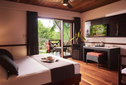 海沿いにあるこのスパ付きホテルは、クロニアから 0.7 km、プラージュ・ド・ラ・スリ・ショードおよびプラージュ・ド・ラ・ポワント・デ・トロワ・バサンから 10 km 圏内です。プラージュ・ド・ラ・ポワント・デ・トロワ・ロッシュおよびコンサバトリー ブルターニュ ナショナル ドゥ マスカリンも 10 km 圏内です。 このホテルには、2 か所のレストラン、2 つの屋外プール、およびフルサービス スパがあります。共用エリアでの WiFi (無料)および セルフパーキング (無料)もご利用いただけます。その他に、敷地内にはバー / ラウンジ、プールサイドバー、およびスナックバー / デリがあります。